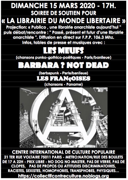 Re: Soirée de soutien à la Librairie du Monde Libertaire