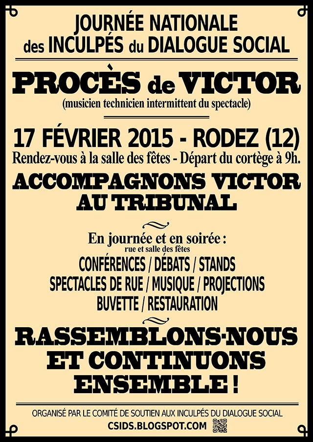 - jour de soutien à Victor, musicien technicien intermittent du spectacle, lors de son procès et ,