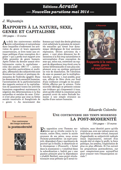 Vient de paraître, éditions acratie