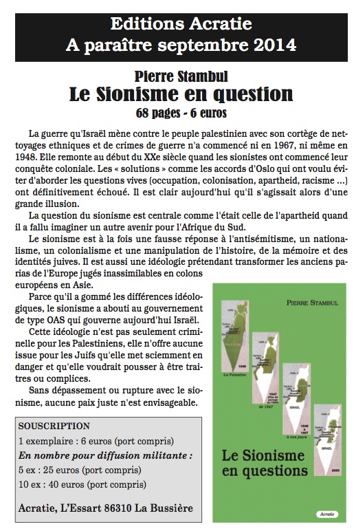 Editions Acratie A paraître septembre 2014